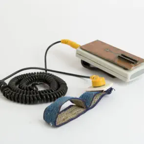 Before portable units existed, clients would sit for hours — sometimes weeks or even months — connected by a wire and armband to a frequency-generating machine. They